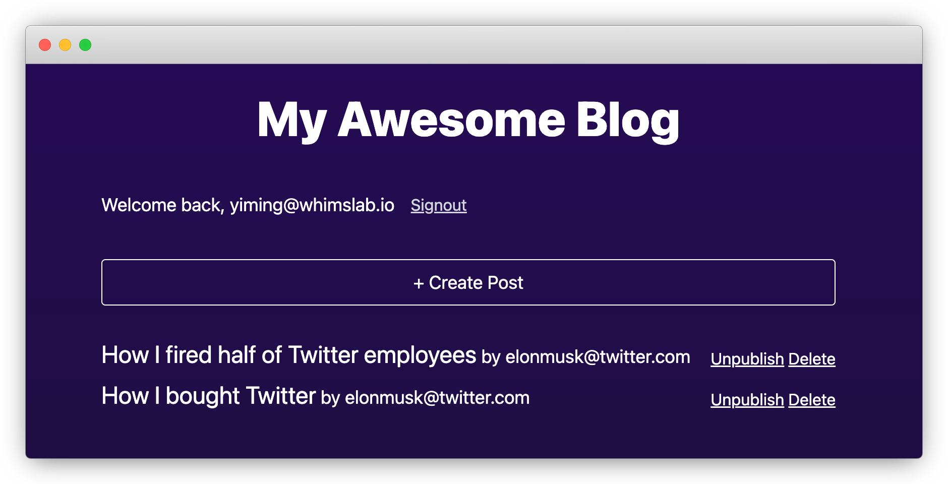 🎉 Congratulations! You've made a simple blogging app without writing a single line of backend code. Pretty cool, isn't it?